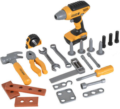 Valósághű készlet 28 alkatrésszel. A készlet tartalmaz egy fúrót 4 cserélhető fúrószárral, egy mérőszalagot, egy kalapácsot és sok más szerszámot. Egy praktikus hátizsák is található a szállításhoz. A fúrógép 3 AAA elemmel működik, amelyek nem tartoznak a csomaghoz. Méret: 22x10x30 сm Csomag mérete: 25x11x30,5 cm Súly kg: 0,750 Életkor: 3 éves kor felett ajánlott
