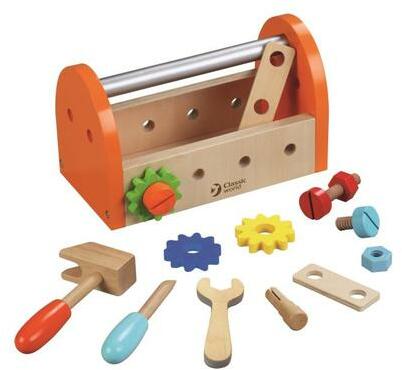 Ne aggódj, anya, én meg tudom csinálni! Fából készült szerszámoskészlet a kisebbek számára, hogy utánozhassák az apukájukat - hiszen melyik gyerek ne nézné kikerekedett szemmel a fúrást, faragást, kalapácsolást. A játék végeztével a ládában kényelmesen elfér az összes szerszám.