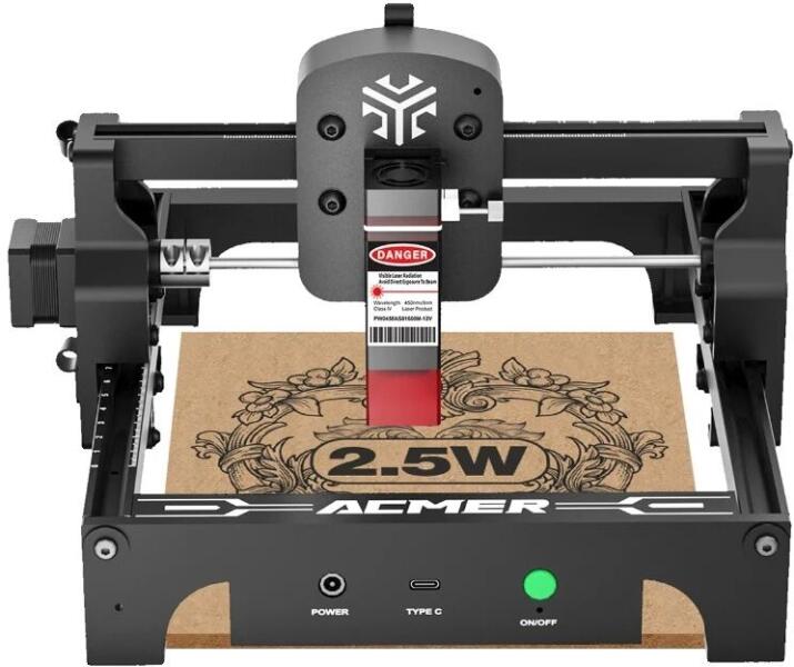 ACME S1 2.5W Mini Lézergravírozó: Precíz alkotás otthon ? Az ACME S1 2.5W mini lézergravírozóval professzionális minőségű gravírozást végezhetsz otthonodban vagy műhelyedben. Készíts egyedi ajándékokat, dekorációkat vagy akár prototípusokat – a lehetőségek végtelenek! Főbb előnyök:Rendkívüli pontosság: 0.01 mm-es pontossággal dolgozhatsz, így a legapróbb részletek is tökéletesen megjelennek. Sokoldalúság: Gravírozz fa, bőr, akril és más anyagokba. Gyorsaság: A 10 000 mm/perc gravírozási sebességnek köszönhetően gyorsan elkészülhetsz a projektekkel. Egyszerű használat: Kompatibilis a népszerű vezérlőszoftverekkel, így kezdők és profik is könnyen használhatják. Tartós kialakítás: A robusztus lézermodul hosszú távú, megbízható működést garantál. Műszaki adatok:Jellemző ÉrtékLézer típusa Dióda lézerMunkaterület 130 x 130 mmGravírozási mélység Max. 10 mmHullámhossz 450 ± 5 nmGépteljesítmény 2.5 WPontosság 0.01 mmFájlformátumok NC, DXF, BMP, JPG, PNGCsatlakozás USBAz ACME S1 2.5W mini lézergravírozóval a kreativitásodnak semmi sem szab határt! ✨